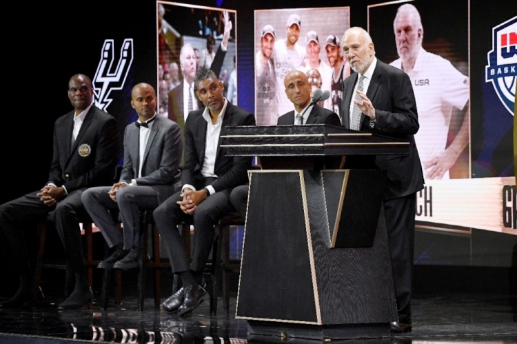 这面旗帜的每一处细节,都是对传奇的精准注解。白色底纹上,五颗金色星星对应着2003至2014年间的五座总冠军奖杯,底部“HALL OF FAME(名人堂)”标识铭记着他2023年的荣耀加冕,而核心的“1390”字样,则是波波维奇执教的丰碑。数据不会说谎:2214场执教、1390场胜利、62.8%胜率、22个赛季带队闯进季后赛,季后赛总胜场达到170场,5次总冠军,3次获得年度最佳教练。但比起数字,更动人的是致敬方式——没有盛大仪式,恰如波波维奇本人,永远将聚光灯让给团队。