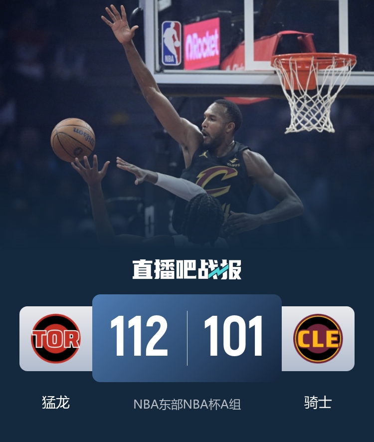 11月1日讯 NBA东部NBA杯A组,骑士今日迎战猛龙,前者上场比赛不敌凯尔特人,后者则是遭遇四连败,此役米切尔和阿伦缺战。