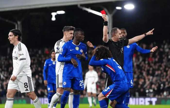 富勒姆2比1切尔西,蓝军后卫库库雷利亚染红